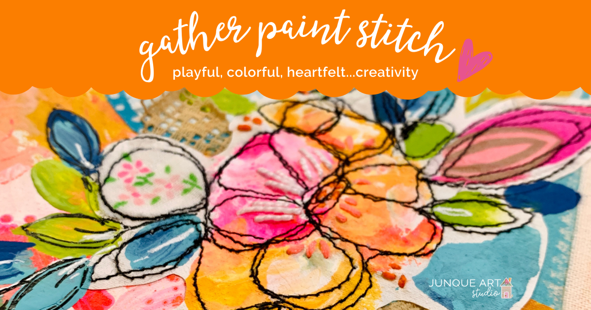 Come play with me making a found florals art journal. I will walk you through my process of creating a unique, fun, art journal cover from found pieces that are collaged together to create something beautiful. We will then bind the pages for a finished journal that can be used for an art journal, sketch book, or writing journal.